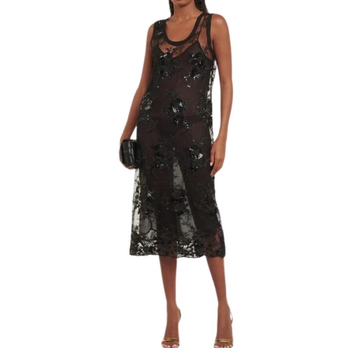 The Dodo Bar Or ILAN Dress is crafted from sequin-embellished embroidered tulle, with handmade fabric.