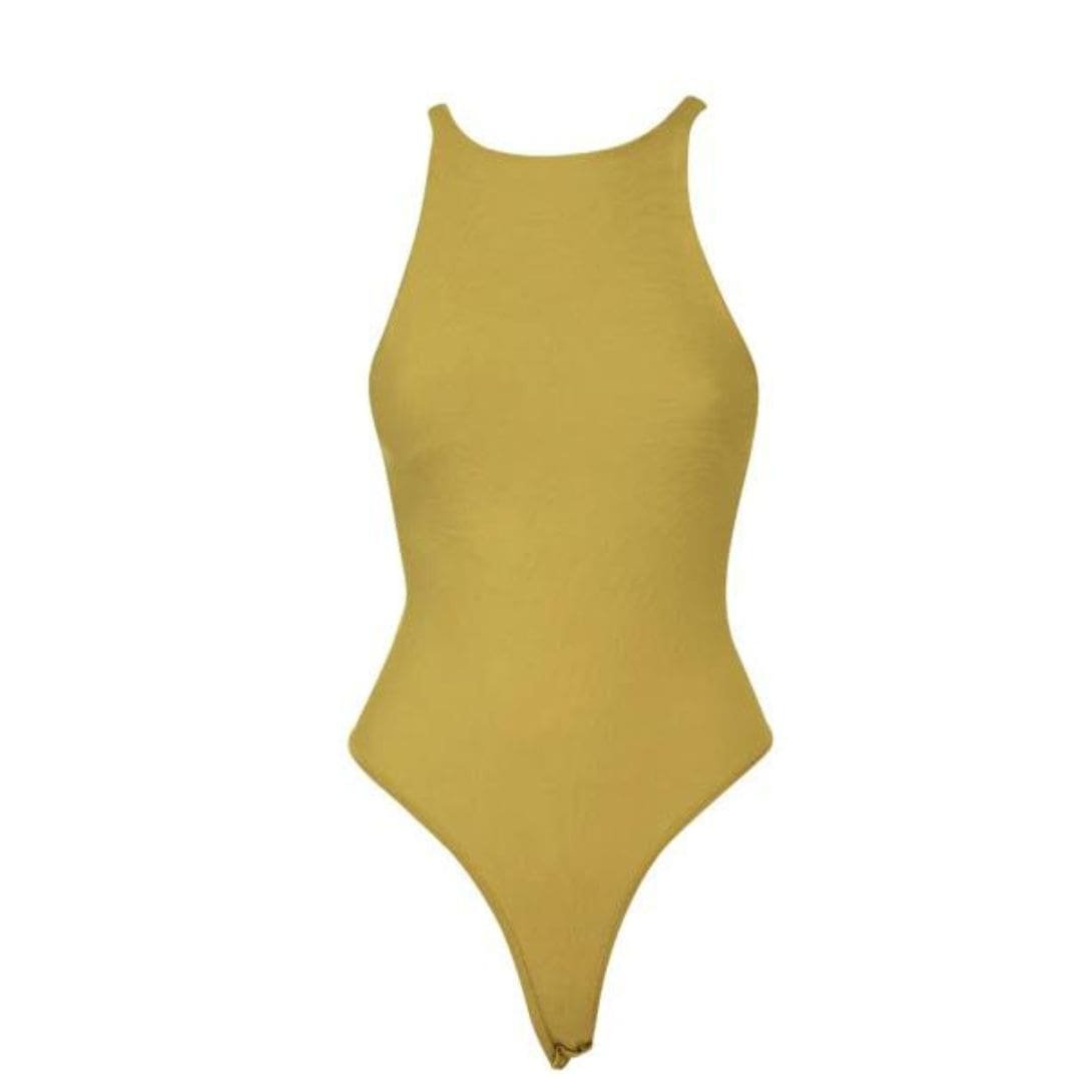 The dodo bar or Tony V Knit Bodysuit is crafted from a lightweight viscose blend knit. It features a halter neck silhouette with a round neckline, a V-cut back, and artful back cutouts. This sleeveless design has fixed spaghetti straps and is unlined for comfort.