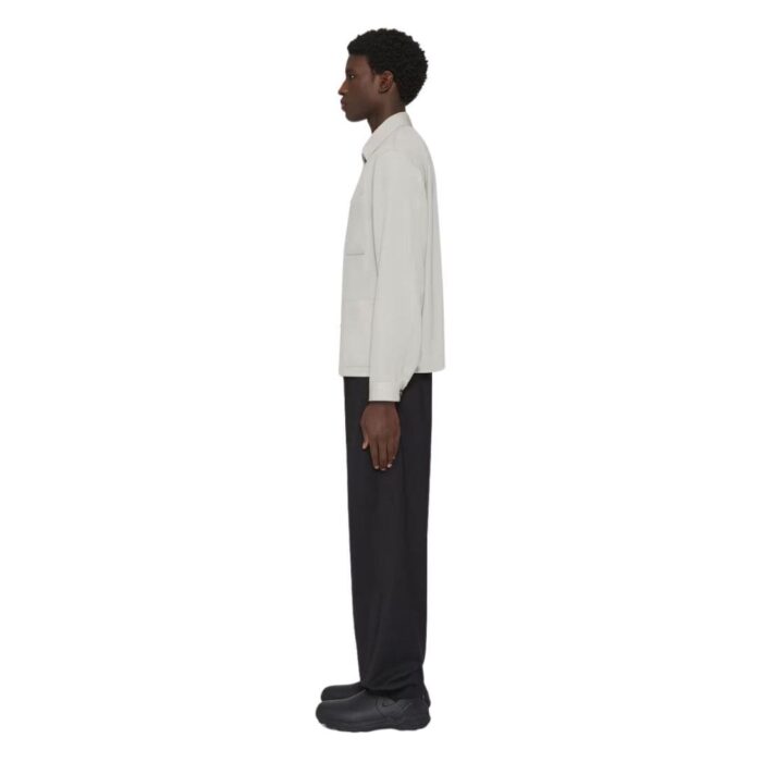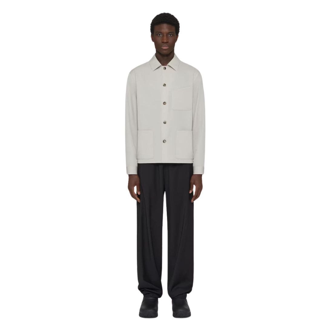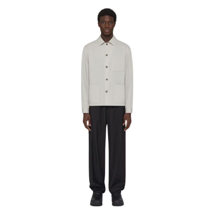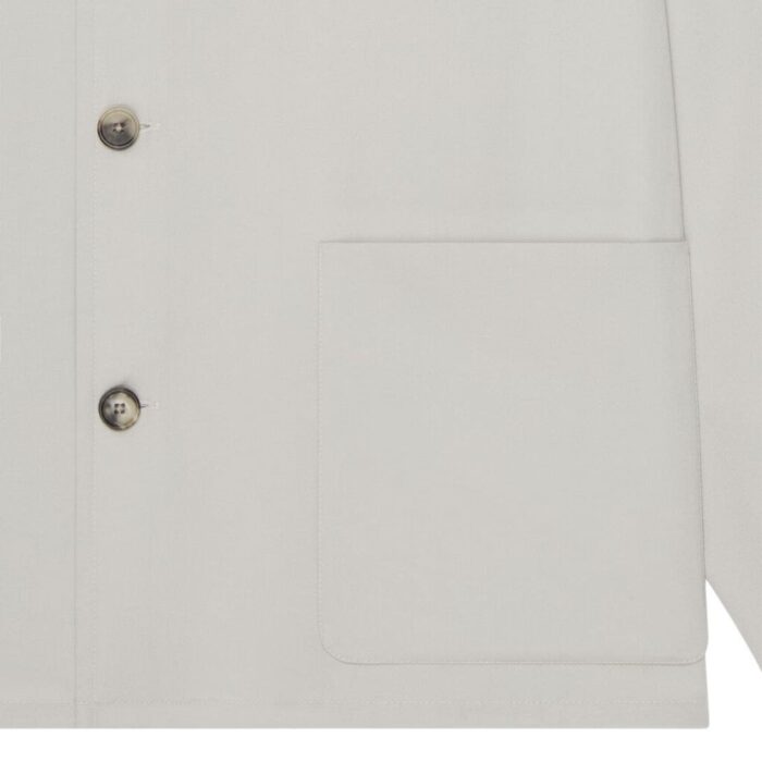 Crafted from high-quality double face wool, the overshirt offers both comfort and warmth, making it an ideal choice for transitional weather. The use of double face wool not only enhances its insulating properties but also gives the garment a luxurious feel and a polished appearance. The fabric is soft to the touch, providing a cozy wearing experience while maintaining a structured silhouette.