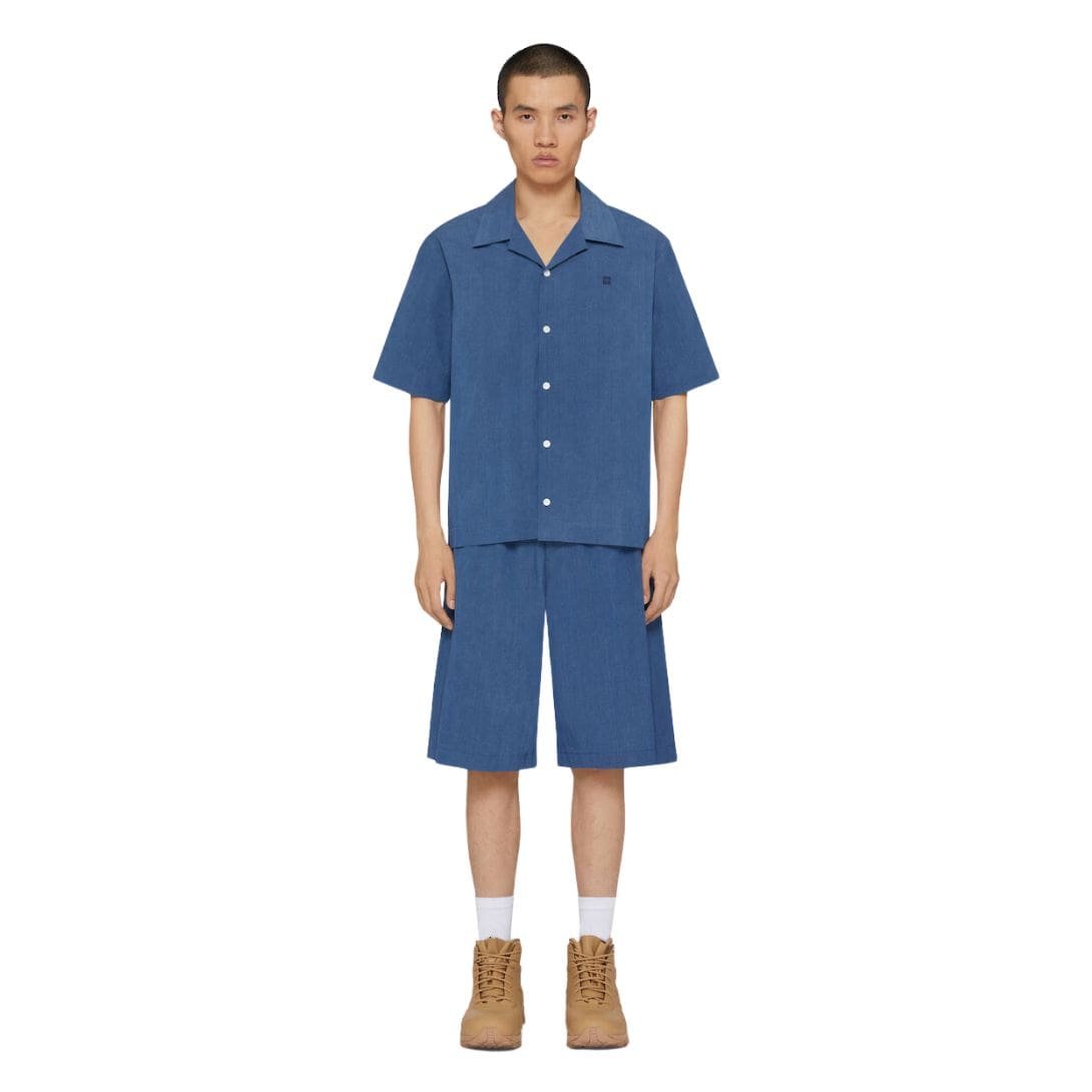The Givenchy Shirt in Ozone Washed Denim Chambray is a sophisticated and contemporary piece that epitomizes modern casualwear. Crafted from high-quality chambray fabric, this shirt features a unique ozone-washed treatment that gives it a distinct, slightly faded appearance. This wash technique imparts a vintage charm while maintaining a sleek, polished look, making it versatile for both casual and semi-formal occasions.