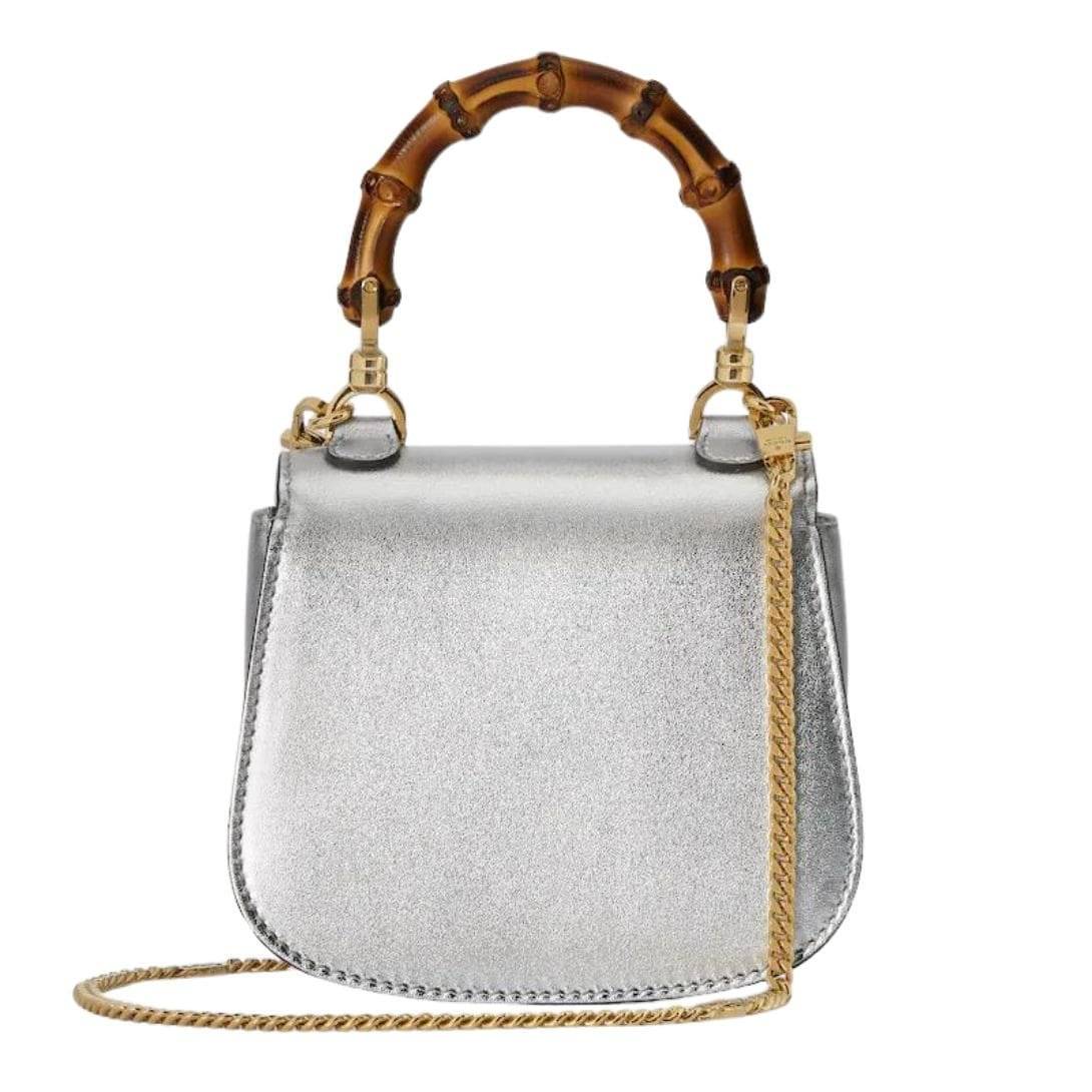 Despite its compact size, the Bamboo 1947 Super Mini Bag is thoughtfully designed to offer practicality. The interior is lined with a high-quality fabric and features a small pocket, ideal for organizing essentials. The bag also includes a detachable chain strap, allowing it to be worn as a crossbody or carried as a clutch, enhancing its versatility for different occasions.