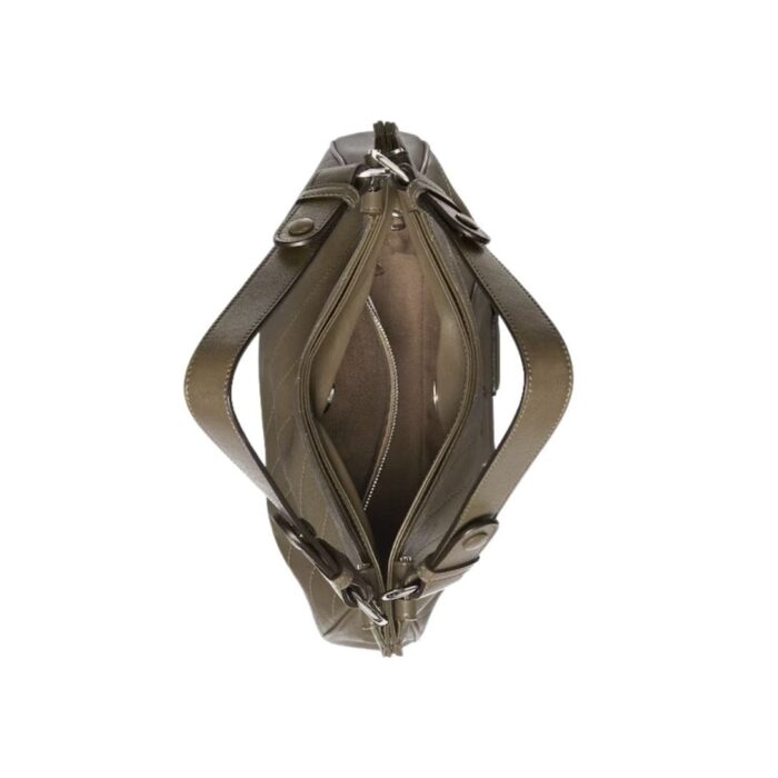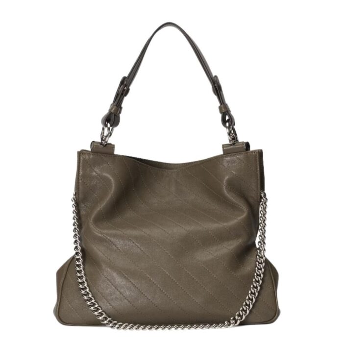 The bag features dual top handles, allowing for a comfortable carry in hand or on the forearm. For added convenience, it includes a detachable shoulder strap, giving you the option to wear it crossbody or over the shoulder, catering to various style preferences and occasions.