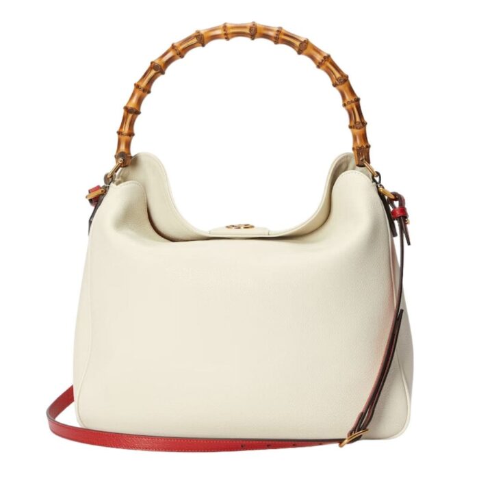 The bag’s standout feature is its iconic bamboo handles, which add a touch of classic Gucci flair and a nod to the brand’s innovative spirit. These handles, crafted from carefully polished bamboo, are both durable and stylish, providing a comfortable grip for effortless carrying. Additionally, the bag includes a detachable shoulder strap, allowing for hands-free convenience and versatility in styling.