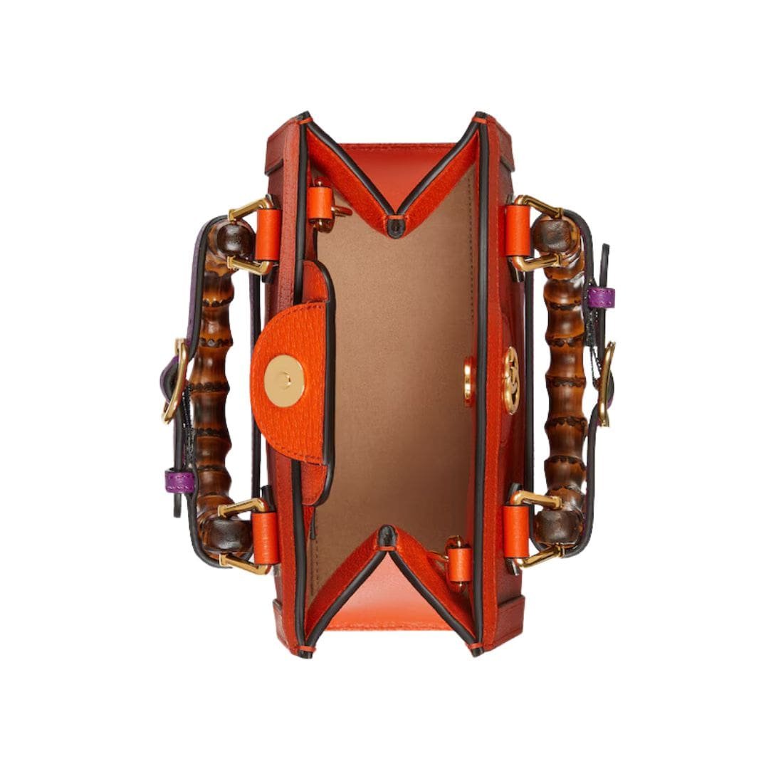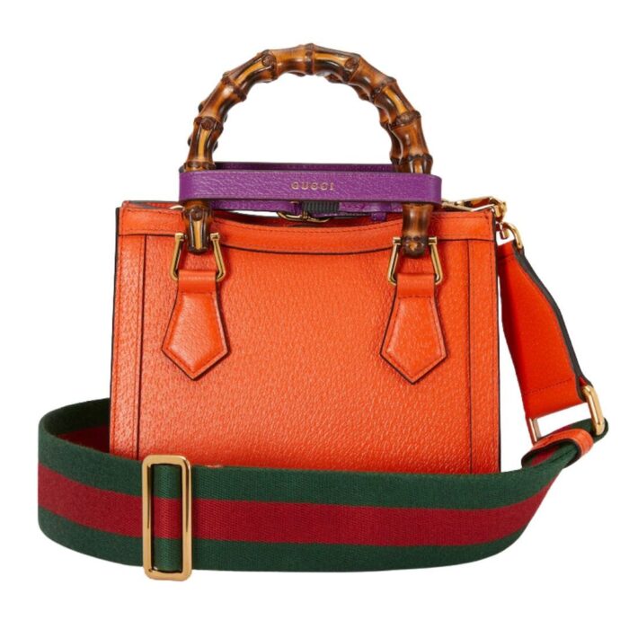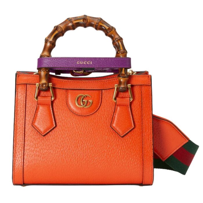 Crafted from high-quality leather, the mini tote exudes sophistication with its sleek design and meticulous attention to detail. The leather is smooth and supple, offering a luxurious feel while ensuring durability. One of the most distinctive features of the Gucci Diana Mini Tote Bag is its bamboo top handles. These iconic handles harken back to the original Gucci bamboo bag introduced in 1947, adding a touch of vintage elegance to the modern silhouette. The bamboo is carefully treated and polished, providing a comfortable grip and a unique aesthetic appeal.