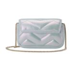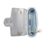 Despite its petite size, the bag is designed with practicality in mind. It features a flap closure that opens to reveal a surprisingly spacious interior for its dimensions, lined with suede-like microfiber. This interior can accommodate essentials such as a phone, keys, cards, and a small wallet, making it perfect for both day and evening use.