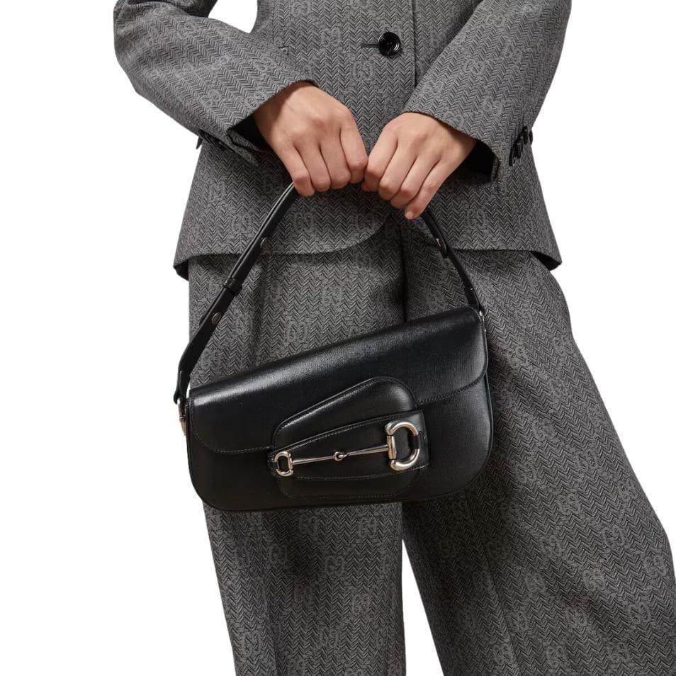 The Horsebit 1955 Shoulder Bag is designed with both style and functionality in mind. Its structured silhouette provides ample space for essentials, while the interior is thoughtfully organized with multiple compartments to keep belongings in order. The bag is equipped with an adjustable leather shoulder strap, allowing for versatile wear options—whether draped elegantly over the shoulder or carried crossbody.