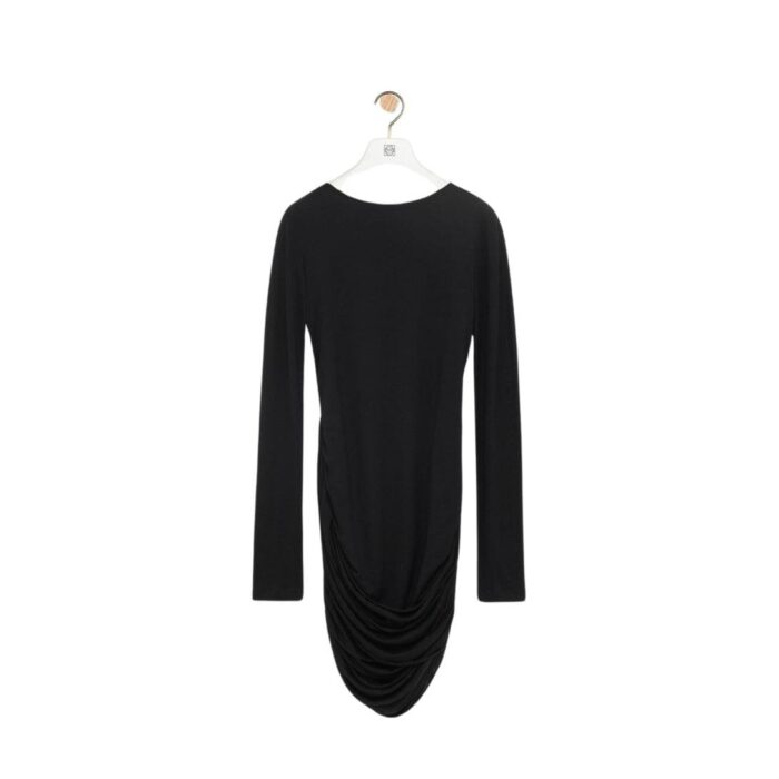 In summary, Loewe’s draped dress in lyocell is a testament to modern luxury and sustainable fashion. Its combination of eco-friendly material, sophisticated design, and impeccable craftsmanship makes it a must-have for those who value both style and comfort. This dress promises to be a timeless staple in any wardrobe, offering elegance and versatility with every wear.
