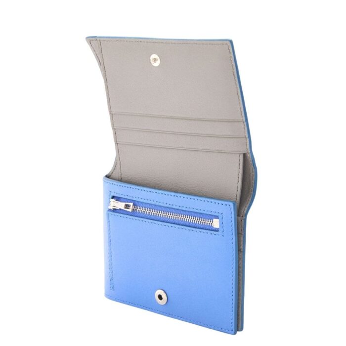 The wallet features metallic elements finished in palladium, adding a modern and sleek touch. The palladium finish not only enhances the aesthetic appeal but also provides additional durability to the hardware, ensuring it remains pristine and functional over time.