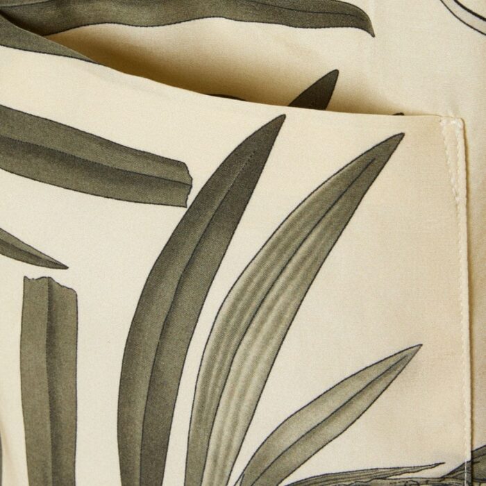 The trousers feature an effortlessly relaxed silhouette, offering a modern take on traditional pyjama wear. The relaxed fit and elastic waistband provide an adjustable and comfortable experience, while the silk-cotton blend drapes gracefully, enhancing the overall flow and structure of the garment. This design not only offers practicality but also adds a touch of sophistication, elevating the trousers from mere sleepwear to a versatile fashion statement.