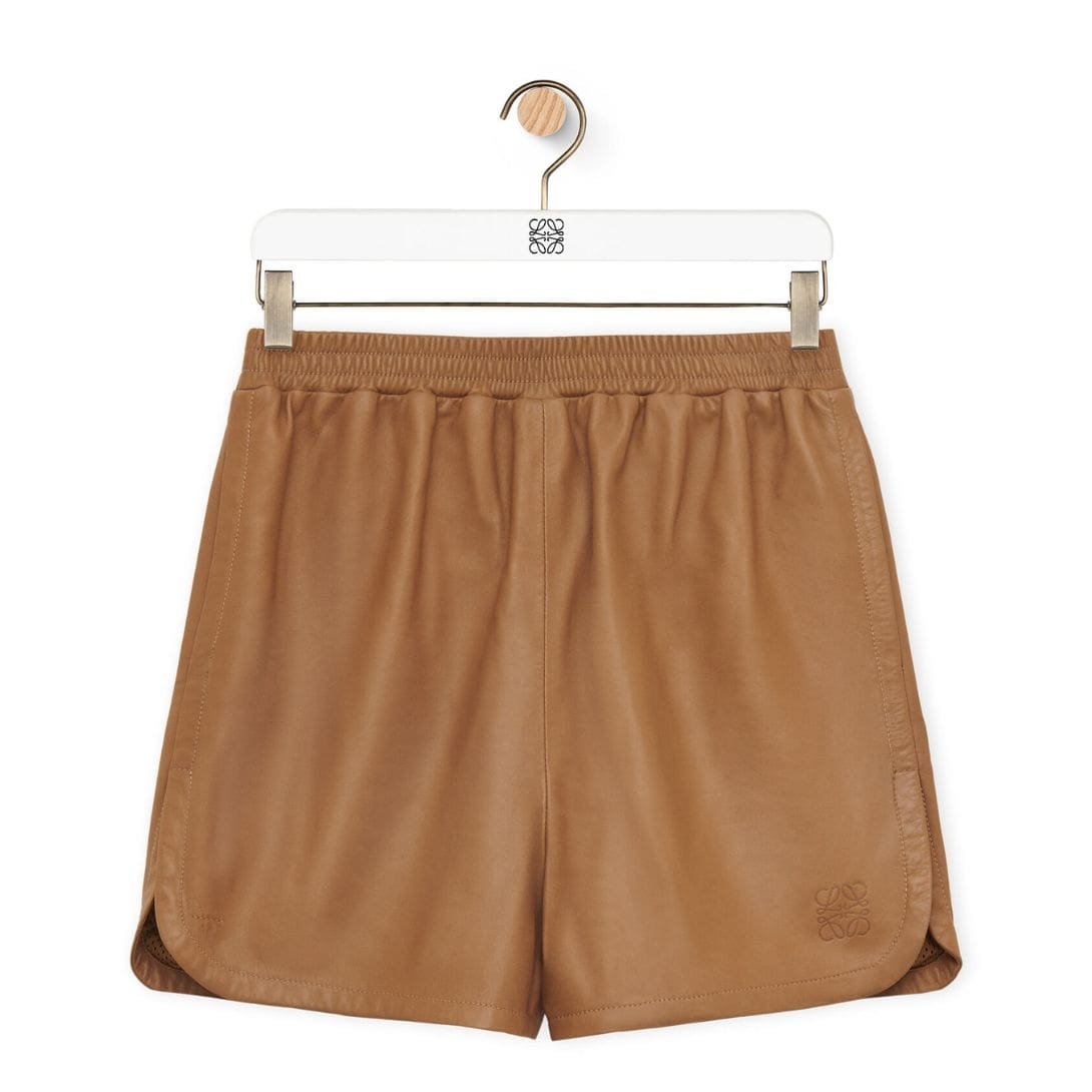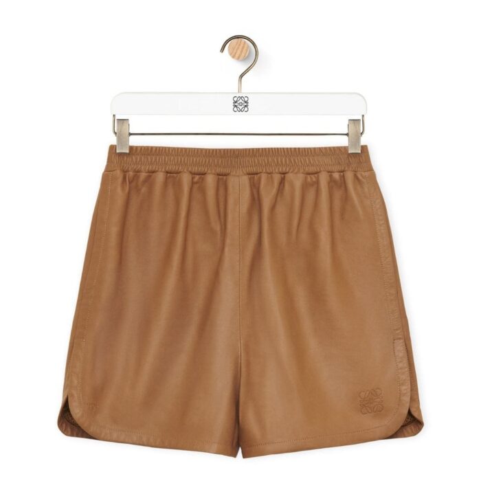 Designed to seamlessly integrate into any wardrobe, LOEWE shorts in Nappa lambskin can be dressed up or down, making them versatile pieces for various occasions. Pair them with a tailored blazer and loafers for a sophisticated look suitable for a formal event, or style them with a casual tee and sneakers for a more relaxed, everyday outfit. Their neutral tones and classic design ensure they complement a wide range of colors and patterns, enhancing their versatility.