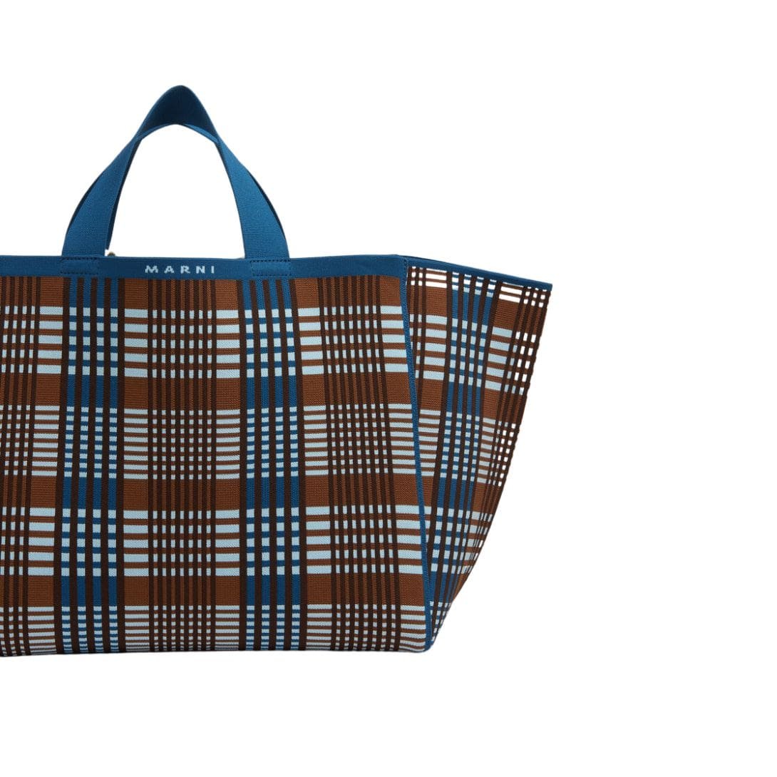 MARNI BLUE AND BROWN JACQUARD CHECK SILLO MEDIUM SHOPPER
