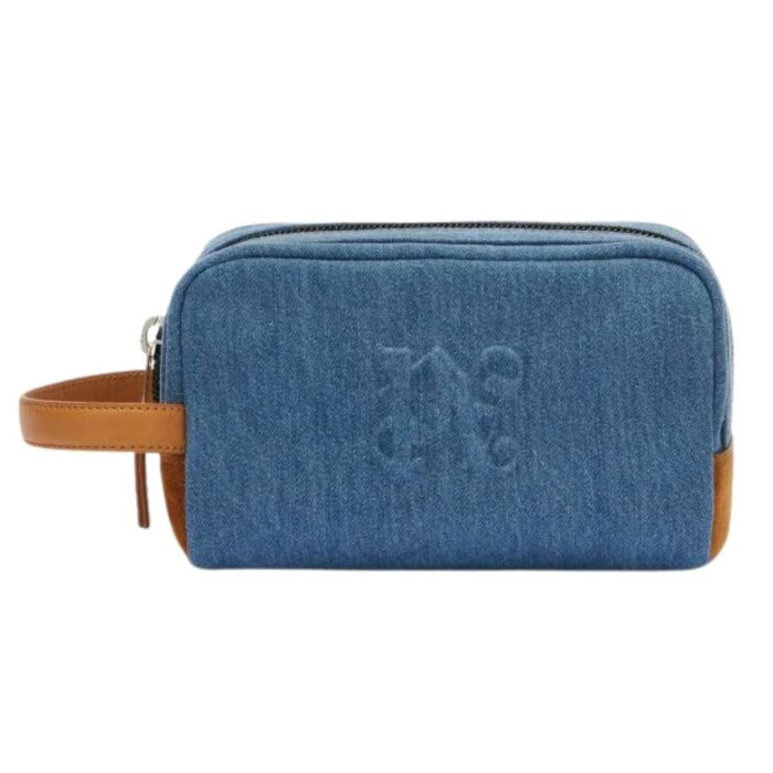 The Palm Angels Denim Monogram Pouch is a distinctive and stylish accessory that perfectly embodies the brand’s bold aesthetic and contemporary streetwear vibe. This pouch is crafted from high-quality denim, ensuring both durability and a casual, yet chic, look. The denim material gives it a unique texture and a relaxed feel, making it an excellent addition to any urban outfit.  PALM ANGELS DENIM MONOGRAM POUCH
