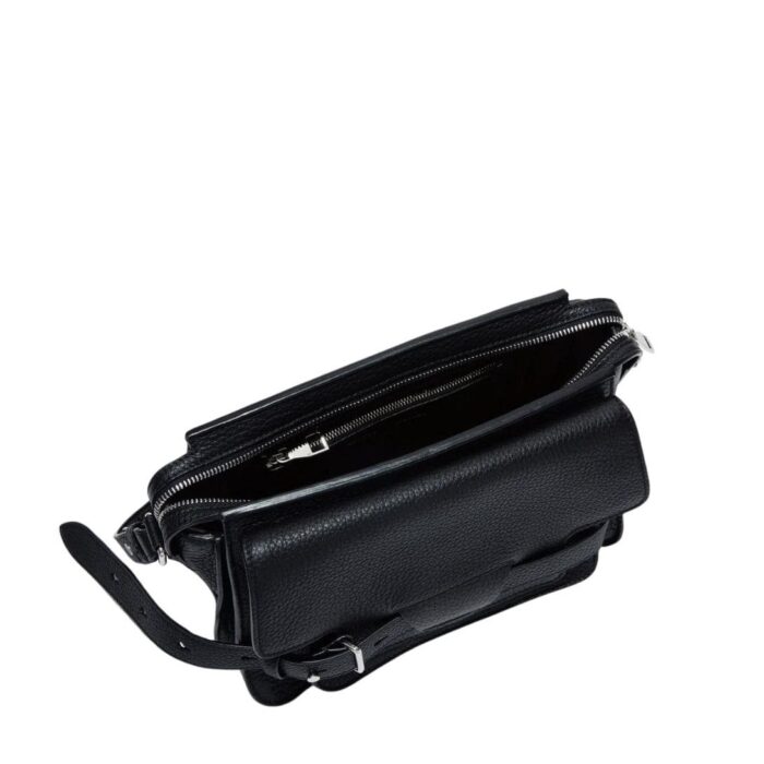 At the heart of the design lies a fold-over flap adorned with signature belted straps, featuring a distinctive D-ring buckle. This iconic detail not only adds a touch of heritage-inspired charm but also serves a practical purpose, ensuring the security of your belongings while infusing the bag with a sense of understated elegance.