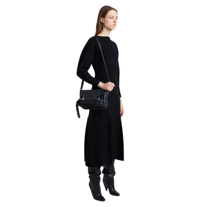 Step into the Proenza Beacon Saddle Bag Black. realm of timeless elegance with Look 19 from the Fall 23 Runway Collection, showcasing the exquisite Beacon Saddle Bag. Crafted with meticulous attention to detail, this sophisticated accessory embodies a harmonious blend of tradition and modernity, exuding an aura of refined luxury.