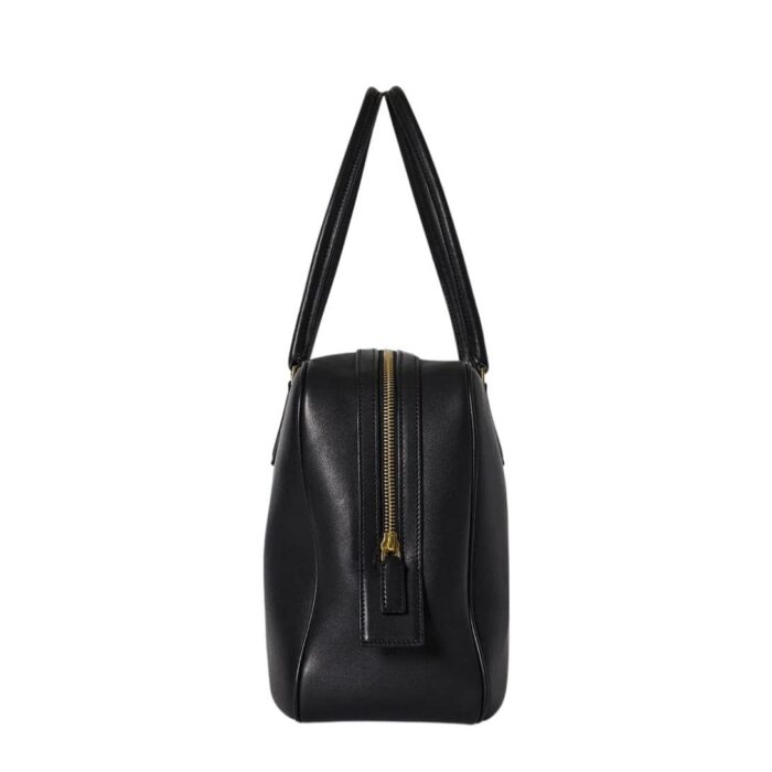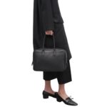 The bag features a top handle and a detachable shoulder strap, offering versatility for different carrying options. The top handle is designed for a more formal look, while the shoulder strap adds a casual touch, making it suitable for both day and evening wear. The hardware is discreet and understated, enhancing the bag’s minimalist appeal without drawing unnecessary attention.