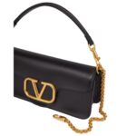 Introducing the Valentino Garavani Locò CALFSKIN shoulder bag, expertly crafted from premium calfskin leather and adorned with a striking metallic VLogo Signature detail. This versatile bag offers multiple carrying options, whether on the shoulder, crossbody, or as a handbag, thanks to its removable handle and adjustable, detachable chain.